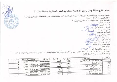 الإعلان عن أسماء الفائزين في مسابقة الرئيس للمتون المحظرية
