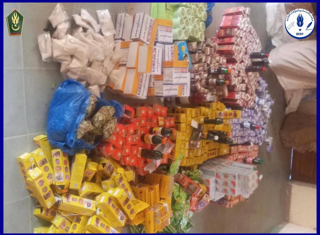 وتتكون الكمية المضبوطة من عدة أكياس تضم أنواعا مختلفة من الأدوية وبعض الأعشاب.