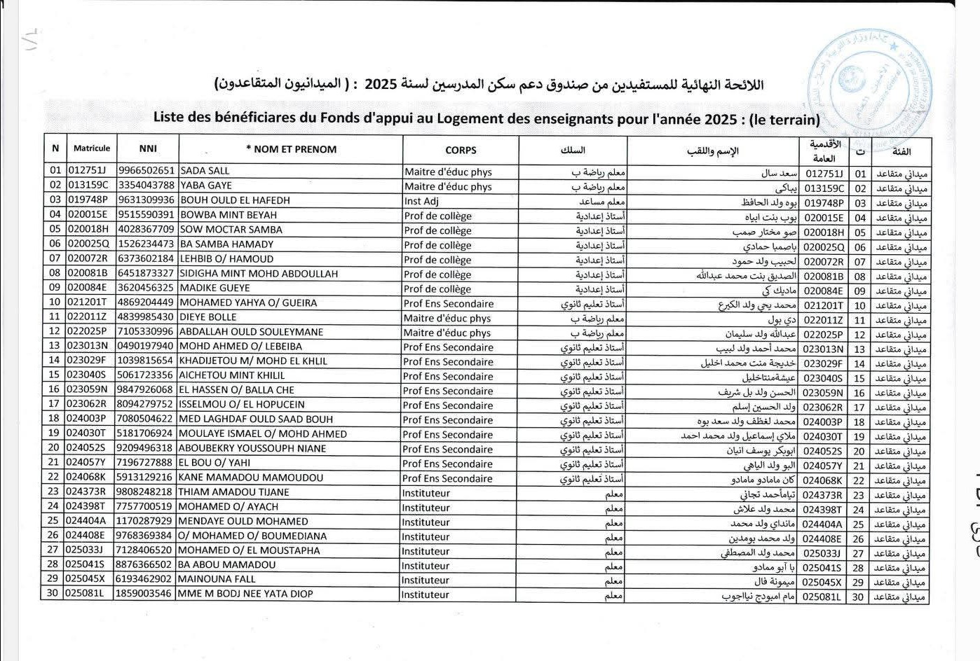 أعلنت وزارة التربية وإصلاح نظام التعليم اليوم الخميس اللوائح النهائية للمستفيدين من صندوق دعم سكن المدرسين برسم سنة 2025.