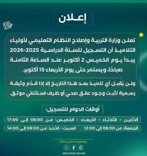 وزارة التربية تحدد موعد بدء وانتهاء التسجيل المدرسي