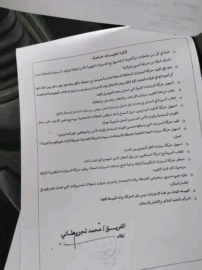 ووزّع التعميم مهام التطبيق بين مختلف الأجهزة الأمنية، حيث تتولى الشرطة والدرك والحرس الوطني تنفيذ القرار كلٌّ في نطاقه الجغرافي، مع إشراف أمني جهوي لضمان احترام التعليمات وضبط المخالفات.