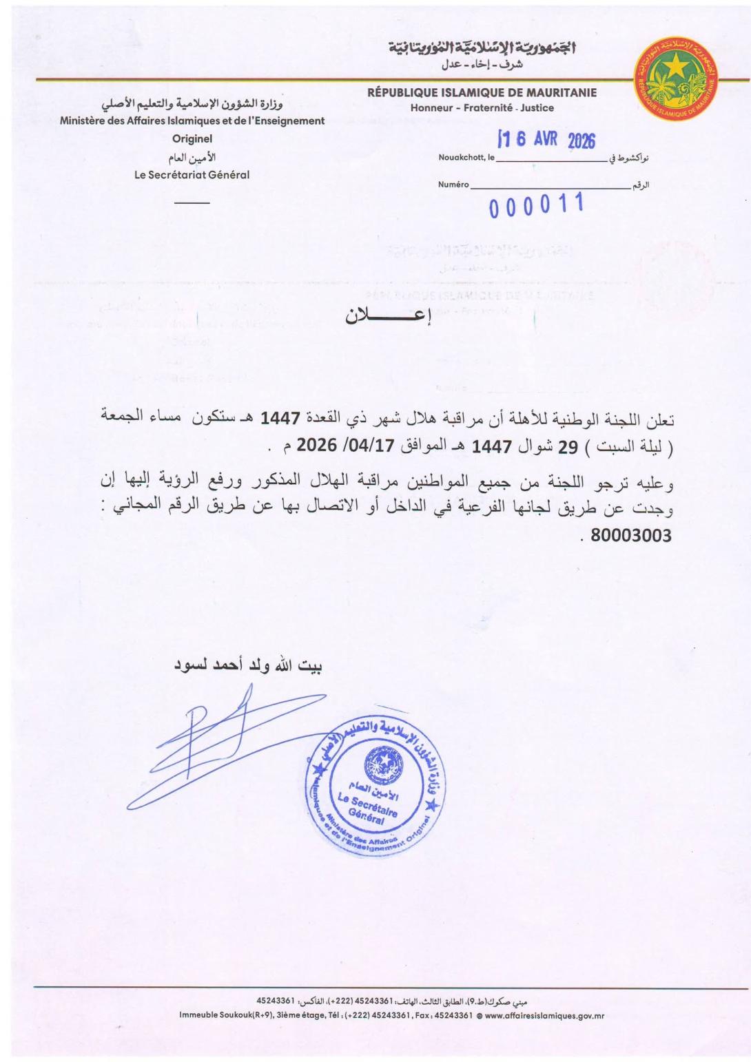 Apr 16 / التعليقات الأهلة تحدد مساء الجمعة لمراقبة هلال ذي القعدة بواسطة عبد الله علي حددت اللجنة الوطنية لمراقبة الأهلة مساء غد الجمعة لمراقبة هلال ذي القعدة من العام الهجري 1447 اللجنة وفي بلاغ نشرته صباح اليوم الخميس، طالبت المواطنين بمراقبة الهلال النذكور ورفع الرؤية إليها عن طريق لجانها الفرعية أو عن طريق رقمها المجاني 80003003 خميس, 2026/04/16 - 09:59