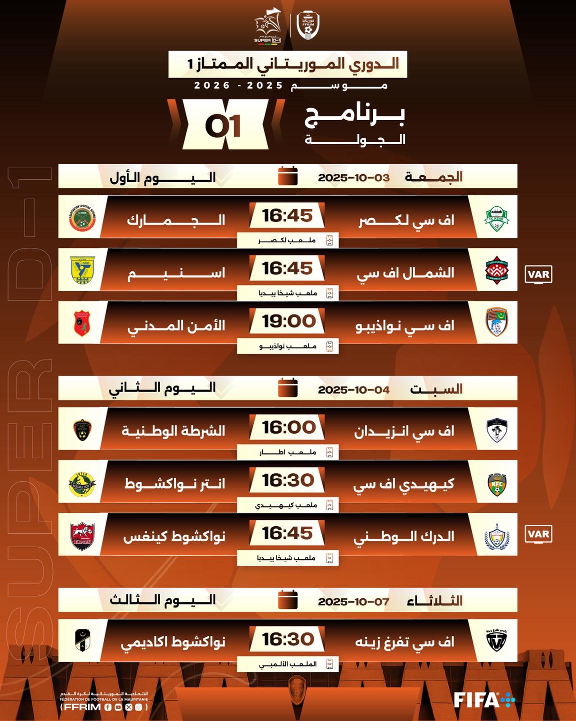 وستنطلق المنافسات على النحو التالي: