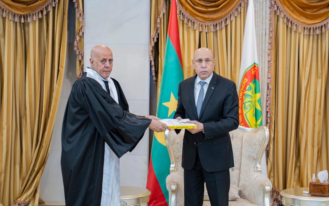 سلم حميد ولد أحمد طالب، رئيس محكمة الحسابات اليوم التقرير السنوي للمحكمة، للرئيس محمد ولد الشيخ محمد أحمد ولد الغزواني.